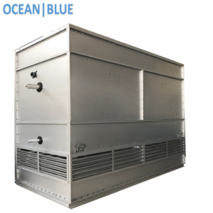 During operation, the cooling water is pumped up to the top nozzle and evenly sprayed onto the outer surface of condensing coil and form a water layer.